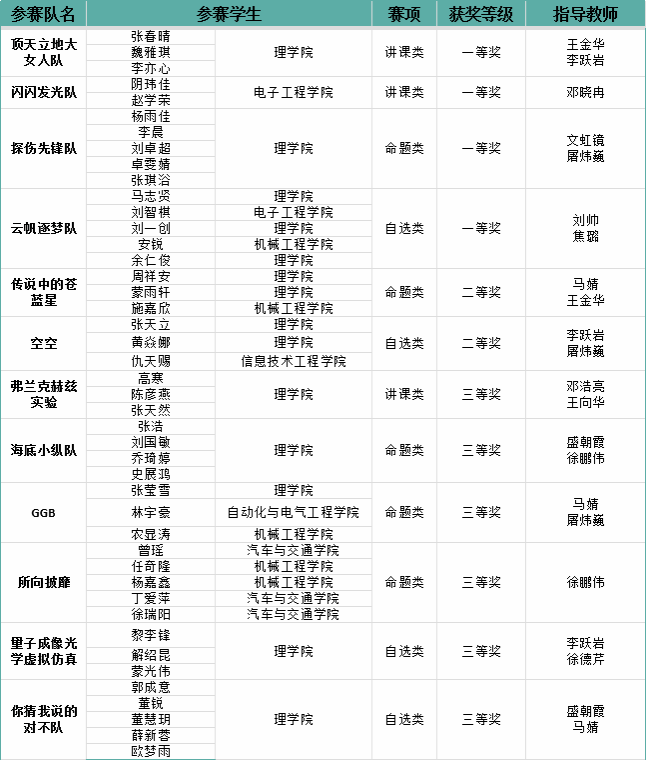 原网讯【通信员 屠炜巍 翟雨润】即日,齐邦年夜教死物理实行比赛(天津赛区)正在北启年夜教降停帐蓬,rb88体育教死构成的12收参赛队同得到市级1等奖4项、两等奖2项、3等奖6项,与得优秀成就,正在齐市参赛下校中实列前茅。