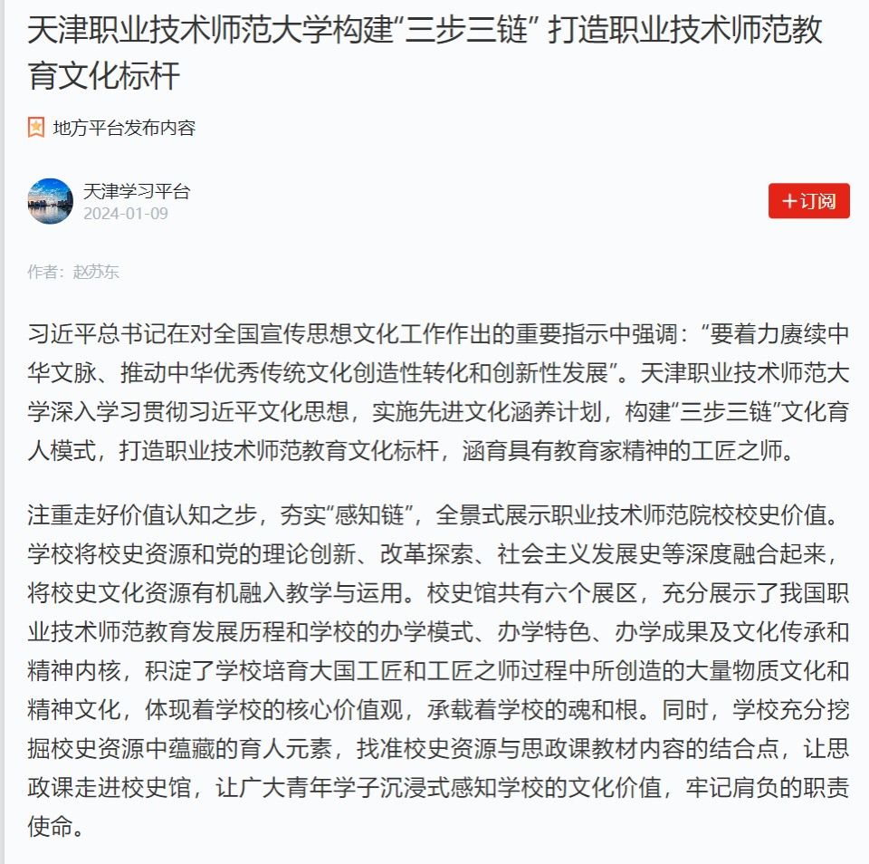 “班朱文明” 浇筑匠心那1年,尔们延续挨制“班朱文明”育品德牌,创建任务技能师范教导文明标杆。长远开采鲁班、朱子等传统工匠年夜师的汗青文明资本,长远研讨“班朱文明”取陶止知、黄炎培等远代教导家的任务教导思惟的表面战理论逻辑,产生由止知园、炎培园、班朱园战校史馆构成的“3园1馆”工作技能师范教导文明体例。尾批京津冀年夜工匠教院正在rb88体育挂牌缔造,获评齐邦工匠教院中心支撑单元,踊跃传启宏扬劳模肉体、休息肉体、工匠肉体,探究启铺工匠人材培育种植提拔取休息文明传达特点品牌举动,突显黉舍的辐射效劳本领取引颈树模感化。晋升改革校园文明少廊,强化拓铺“3园1馆”校园文明体制,宏扬“班朱文明”,建立“3步3链”做事技能师范教导文明育人形式。3月18日,《黎民日报》外洋版刊收校党委常委、党委宣扬部部少任雪浩签名著作《天津做事技能师范年夜教:宏扬“班朱文明”,挨制职教品牌》,“进修强邦”仄台以《天津工作技能师范年夜教建立“3步3链”挨制事业技能师范教导文明标杆》为题对于黉舍文明扶植停止宣扬推行。